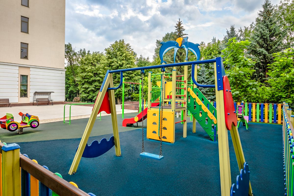 Для ваших детей на территории оборудована современная площадка со специальным покрытием, играть на ней будет абсолютно безопасно. Также здесь есть где отдохнуть и взрослым – на всей территории санатория установлены удобные лавочки. Для всех возрастов в санатории регулярно проводятся развлекательные мероприятия, проходит показ кинофильмов как в полноценном кинотеатре. Вся территория ухожена, здесь комфортно лечиться и отдыхать.