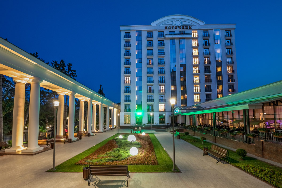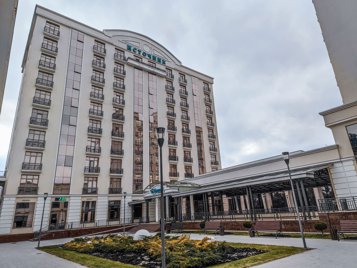 Ваше проживание и лечение в санатории «Источник» будет проходить исключительно на территории здравницы. Так как в одном из зданий действует собственный бювет с минеральной водой, вам не придётся ходить в питьевую галерею Ессентуков, чтобы выпить положенную порцию. Санаторий находится в центре города и в тоже время в парковой зоне. Деревья будут защищать вас от пыли и городских шумов.